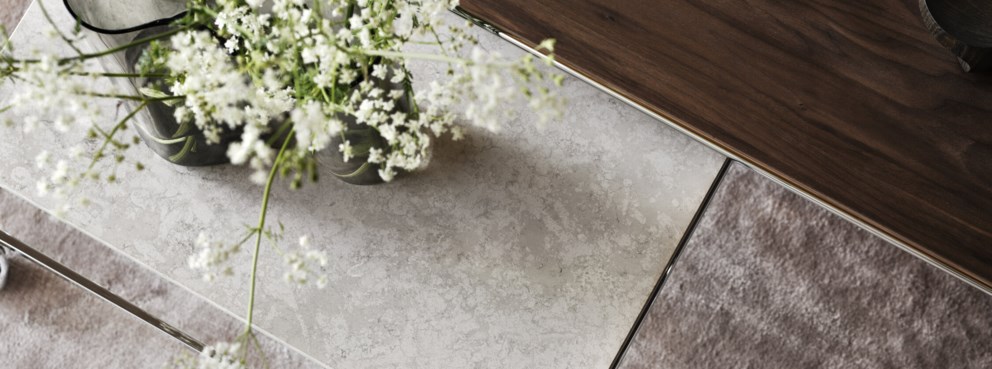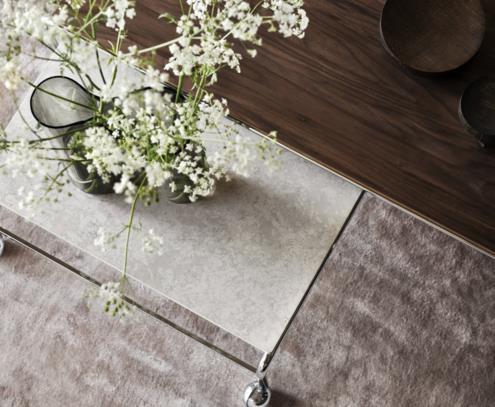 這款稍大選項秉持 Bruno Mathsson 原創桌子的特色,專為搭配其經典椅子而設計,可提供更大表面空間,具有與 Karin 系列相同的優雅美學。鍍鉻框架頂部採用獨特的大理石、石灰石或胡桃木製成。